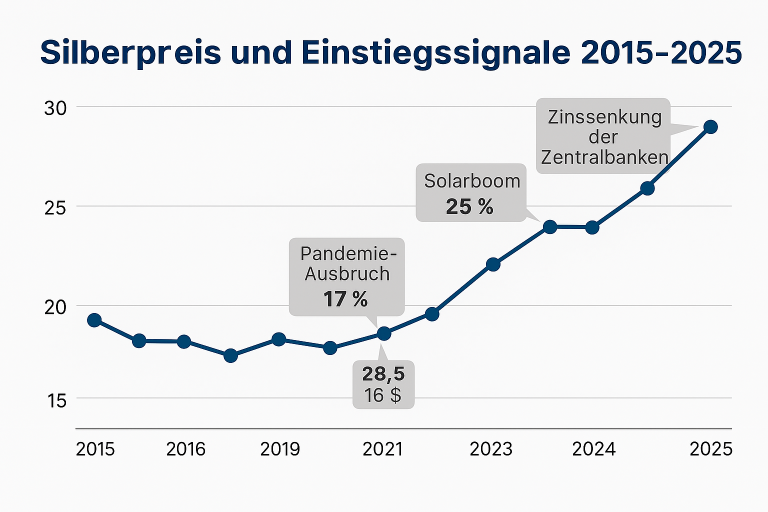Wenn diese Branchen wachsen, steigt oft auch der Silberbedarf. Für Anleger bedeutet das: Phasen technologischer Expansion sind oft gute Kaufzeitpunkte.